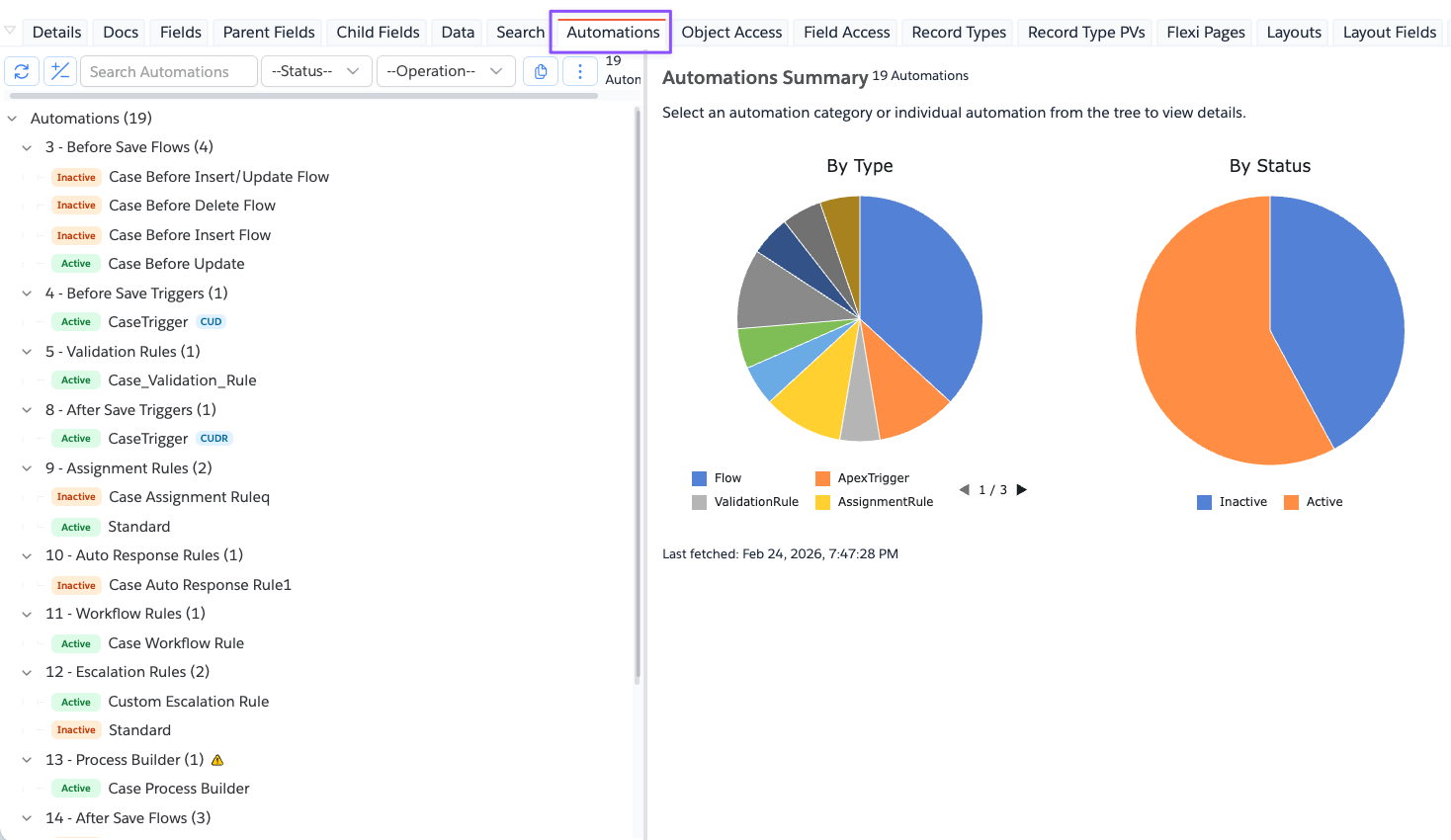 Automations tab gives you a consolidated view of object-level automations in Salesforce, arranged in execution order so you can quickly understand what runs and when.