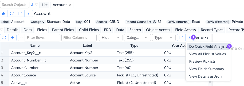 Do you want to quickly analyze the fields and how they are populated, even if that Object contains millions of records? Use the "Quick Field Analysis" feature!
