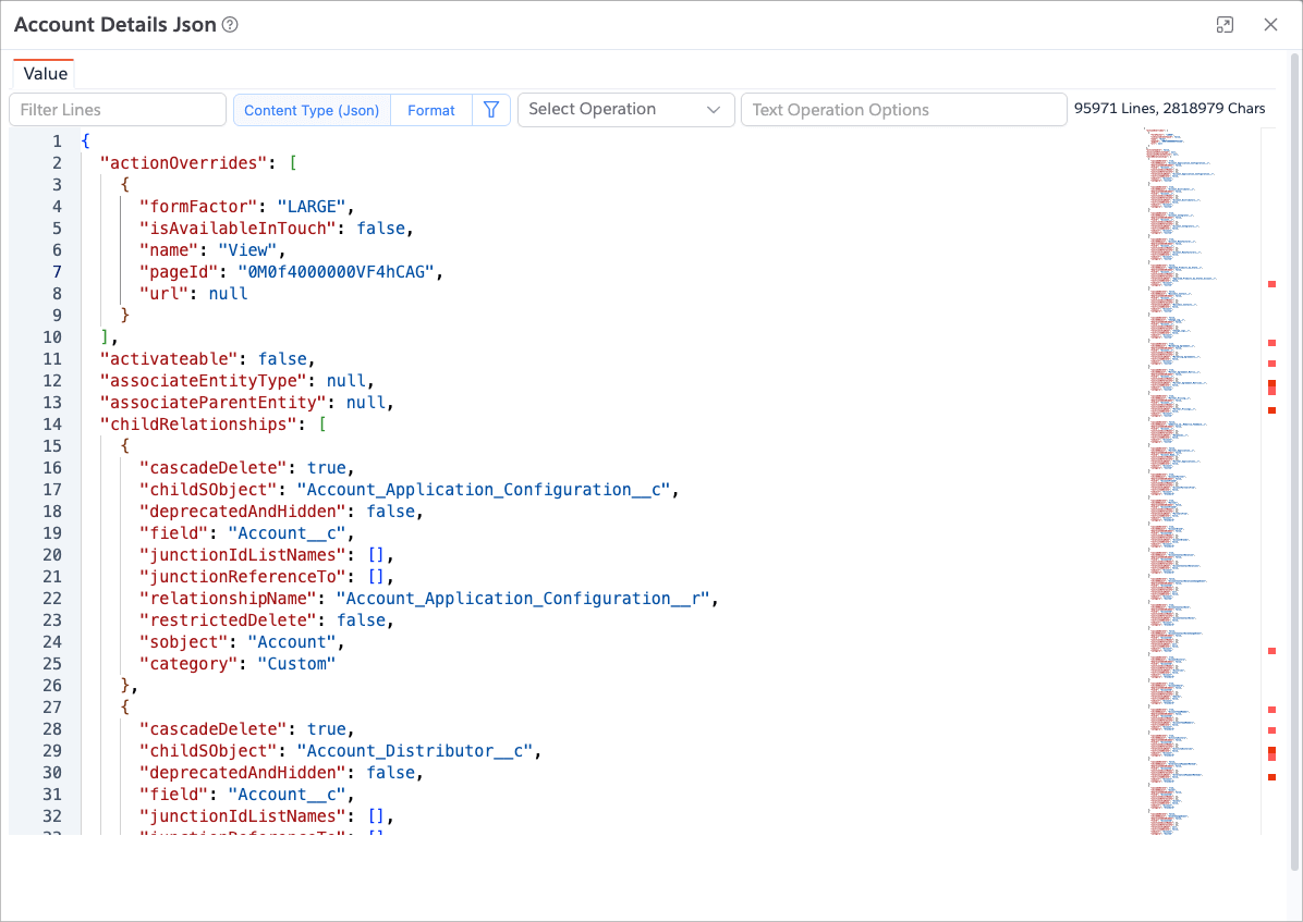 Then the app will open the JSON details in a Value Viewer dialog, where you can filter/search and apply other text operations.