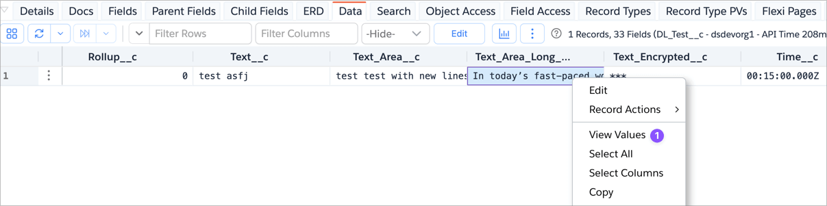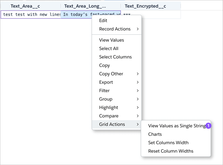 When querying Text Area fields, viewing the full content in a datagrid cell can be difficult due to limited