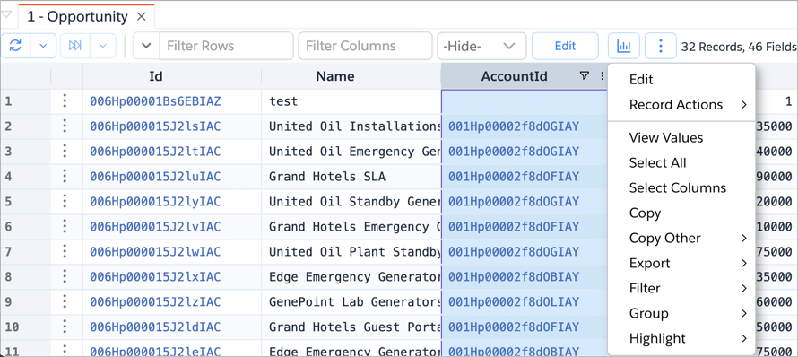 - Right-click → Grid Actions → View Values as Single String.