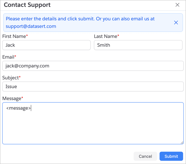 If you want to include a screenshot or other attachments in the support request, please email us at support@datasert.com